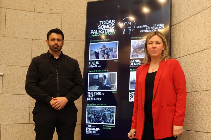 A Deputada de Réxime Interior, Promoción do Territorio e Turismo, Pilar García Porto, e o presidente da Fundación Araguaney-Puente de Culturas, Ghaleb Jaber Martínez, presentaron este xoves no Salón de Actos do Pazo de San Marcos o ciclo de cinema euroárabe AMAL en Ruta Lugo 2026, que se desenvolverá na sede provincial entre os meses de maio e xuño e, que nesta nova edición, estará centrado na situación do pobo palestino.